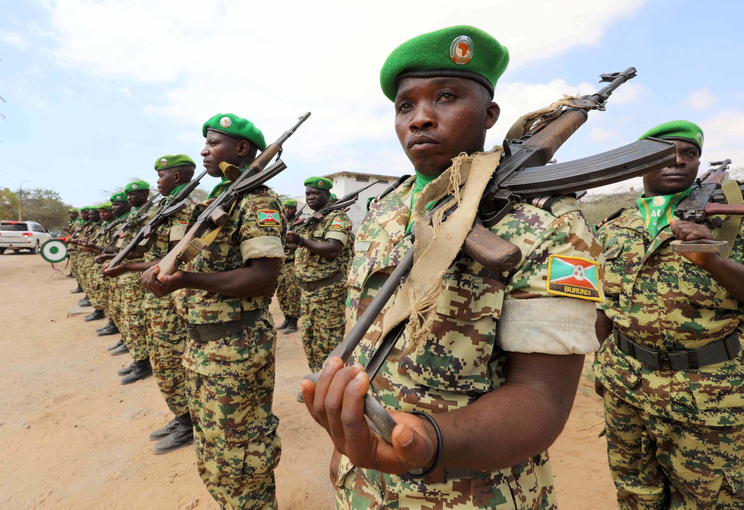 FILE PHOTO: Burundian African Union Mission in Somalia (AMISOM) peacekeepers stand in formation during a ceremony as they prepare to leave the Jaale Siad Military academy after being replaced by the Somali military in Mogadishu, Somalia. February 28, 2019. REUTERS/Feisal Omar/File Photo