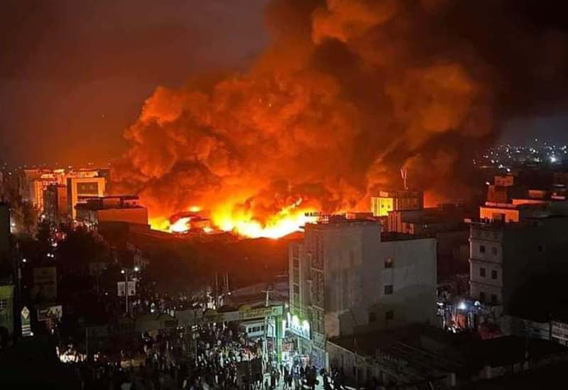 Videos and images circulated on social media showed a blaze tearing through Waaheen Market. Flames and smoke billowed over the market as people scrambled to recover their possessions.