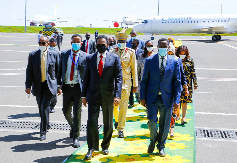 Somali President Farmajo leading a high-profile government delegation “safely arrived” in Addis Ababa to participate in a forthcoming African Union summit, his communications office tweeted.